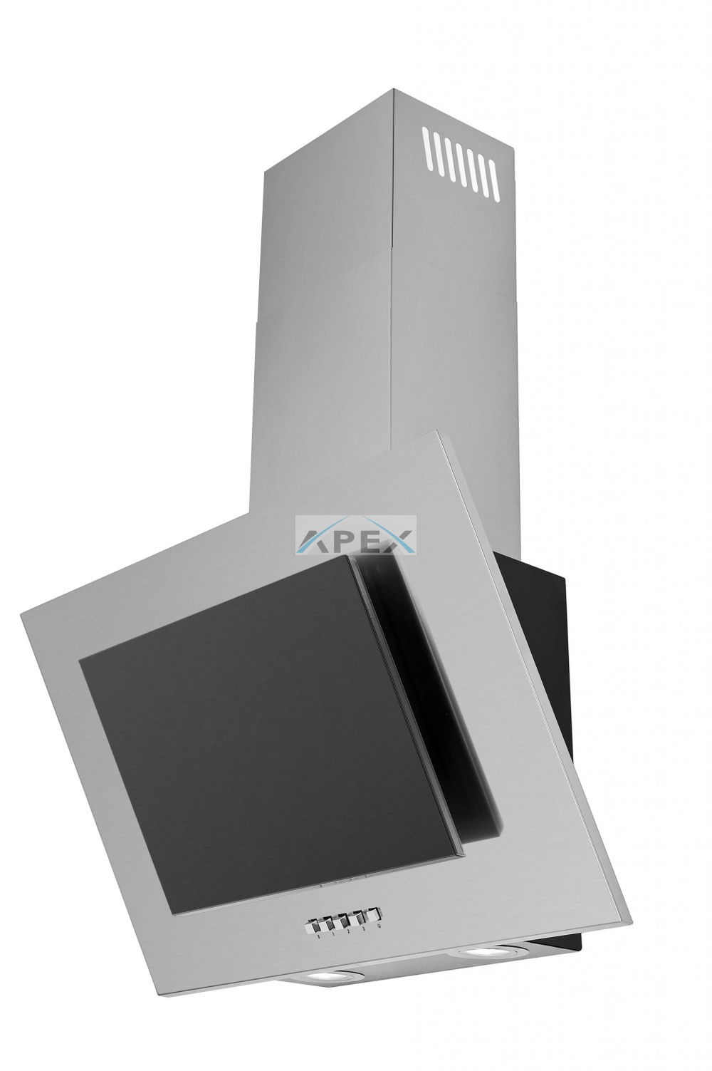 Anyag/szín: inox panel fekete üveggel, inox kürtővel