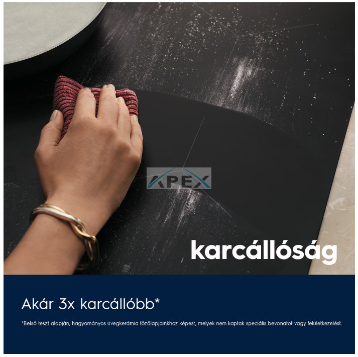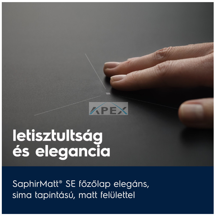 • Vezérlés funkciók: 3 lépéses maradékhő kijelzés, hangjelzés, Booster funkció, gyerekzár, Eco timer, energiagazdálkodás, hőmegtartás, Hob2Hood vezérlés, különálló zóna időzítő, billentyűzár (key-lock), baloldali "Bridge" funkció, percszámláló, szünetelés, SenseCook Boil, hang ki