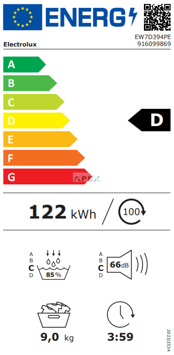 • Súlyozott energiafogyasztás / 100 ciklus (kWh): 122