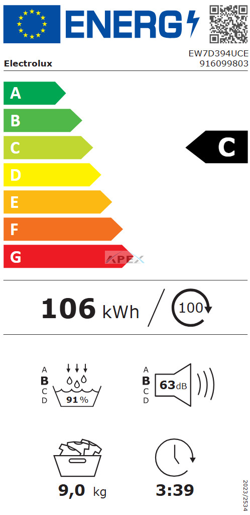 ELECTROLUX EW7D394UCE DelicateCare 700 Hőszivattyús szárítógép 9kg, Inverter motor