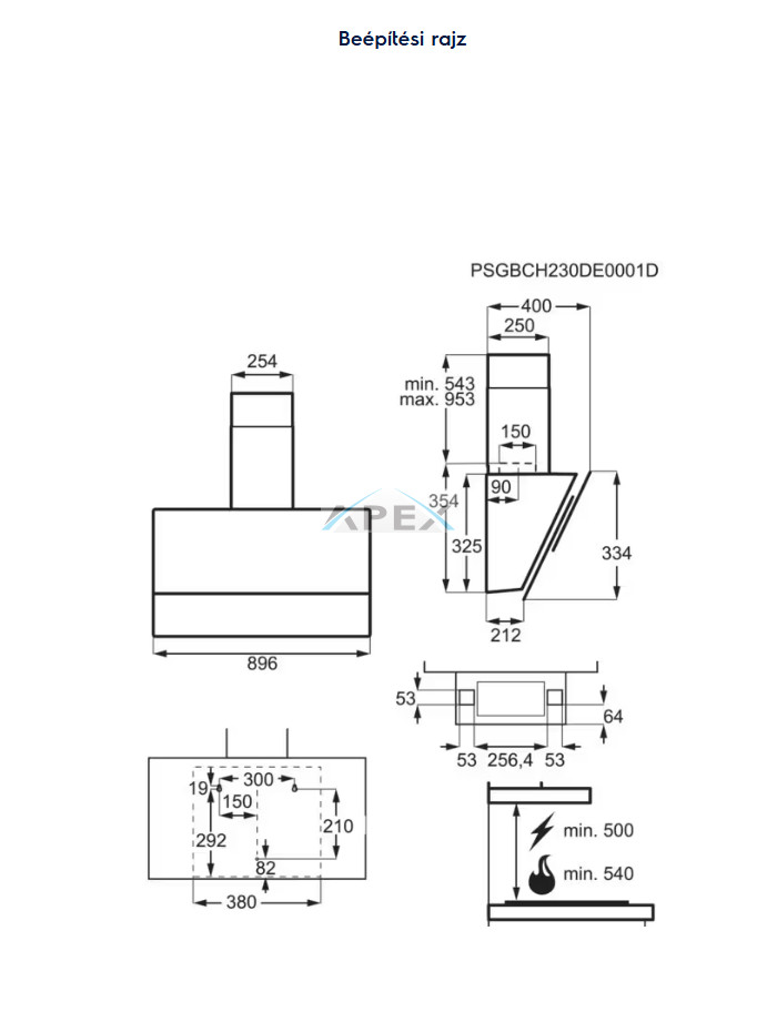 • Minimum távolság gázüzemű főzőlaptól (cm): 54