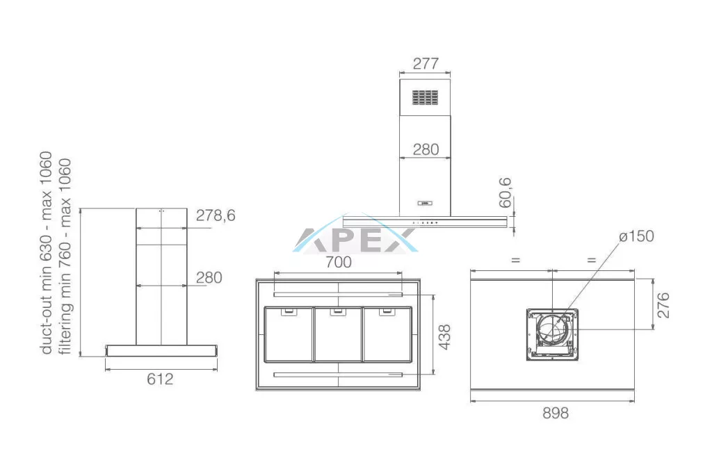Modern kialakítású, nagy szívókapacitással rendelkező páraelszívó. Bármilyen konyhai stílushoz könnyen alkalmazkodik.