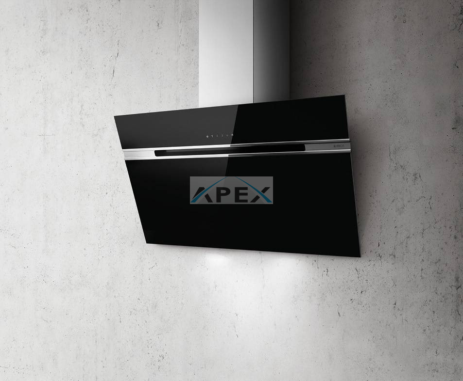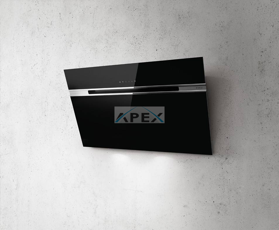 Elica STRIPE BL/A/90/LX döntött üveges fali páraelszívó fekete üveggel és inox kürtővel