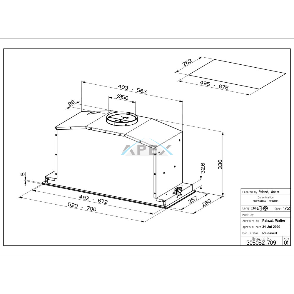 Maximális légáramlási teljesítmény (m3/h) 670 (520mm), 720 (700 mm)