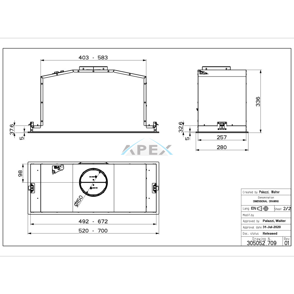 FABER Bl-Air KL A70 Beépíthető páraelszívó (305.0615.687)