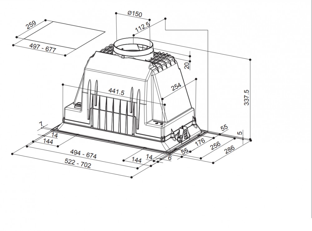felső szekrénybe vagy kürtőbe építhető