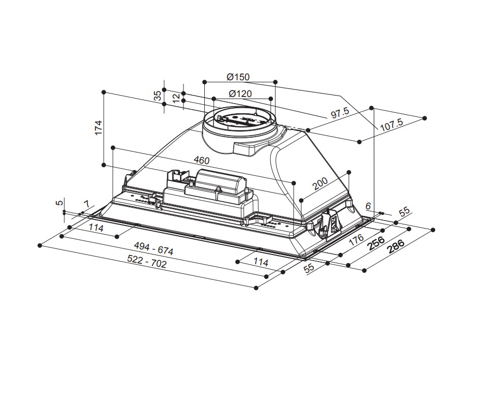 Elvezetés átmérője (mm) 150/120