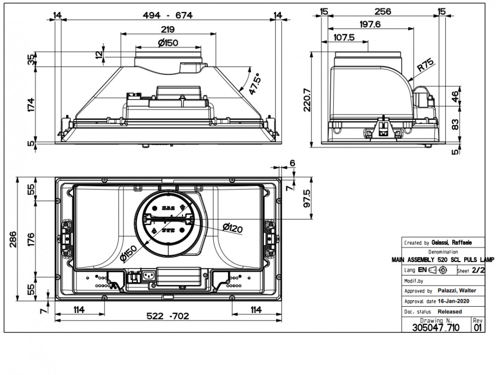Elvezetés átmérője (mm) 150/120