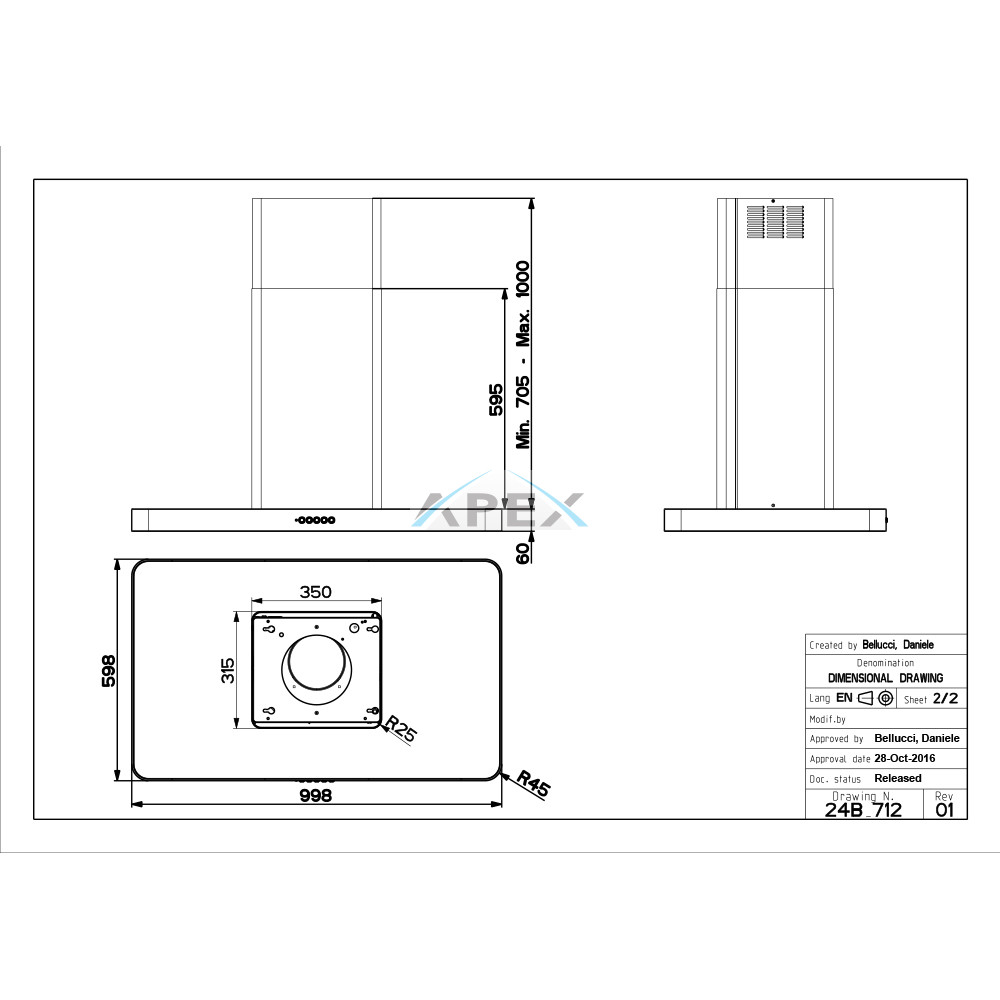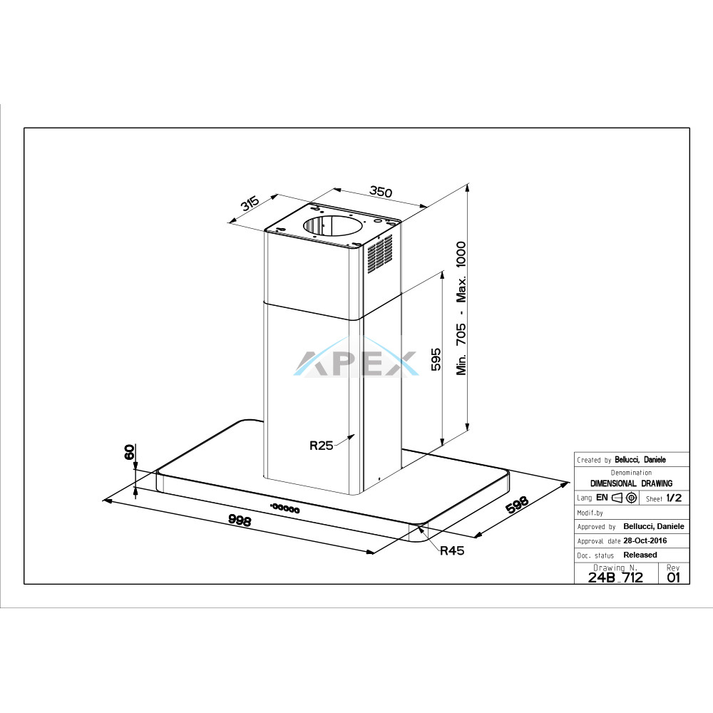 FABER T-Light Isola EV8+ X A100 Sziget páraelszívó, 100 cm 110.0456.264