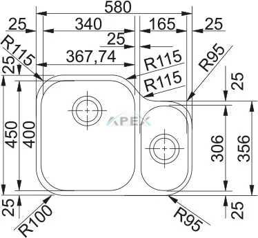 FRANKE AMX 160-34-17 Inox munkalap alá szerelhető mosogatótálca (122.0021.448)