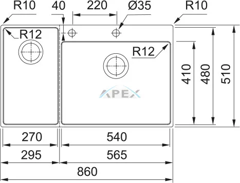 FRANKE BWX 220-54-27 balos Inox mosogatótálca (127.0538.260)