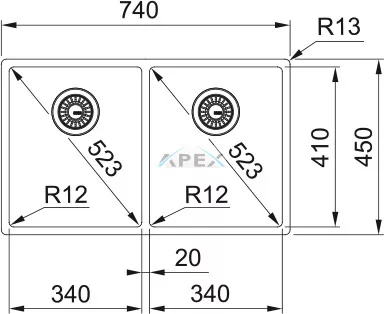 FRANKE BXX 220/120 34-34 Inox mosogatótálca (127.0370.188)