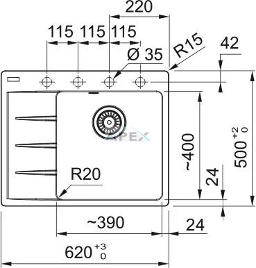 FRANKE Centro CNG 611-62 A balos kasmír gránit mosogatótálca távvezérlővel (114.0685.108)