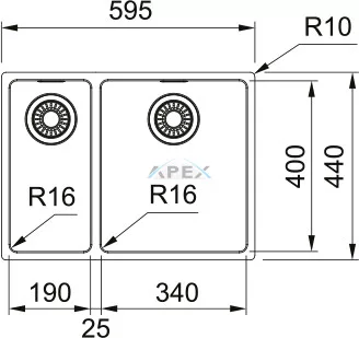 FRANKE MRX 160-34-19 Inox munkalap alá szerelhető mosogatótálca (122.0594.258)