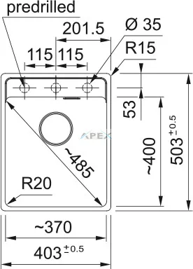 Külső méret: jobbról balra 403 mm