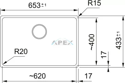 Külső méret: elölről hátra 433 mm