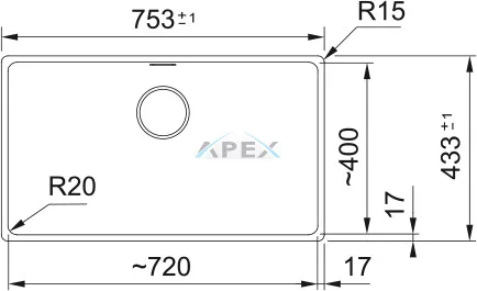 Külső méret: jobbról balra 753 mm