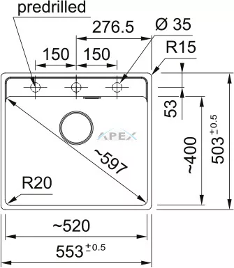 Külső méret: jobbról balra 553 mm