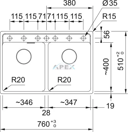 2. tál mérete: jobbról balra 346 mm