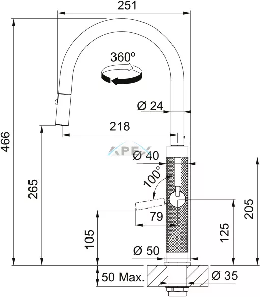 FRANKE Mythos-D Masterpiece Réz csaptelep kihúzható zuhanyfejjel (115.0711.557)