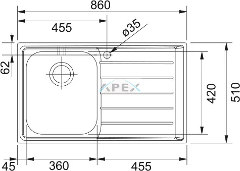 FRANKE Neptune NEX 611 jobbos Inox mosogatótálca (101.0040.731)