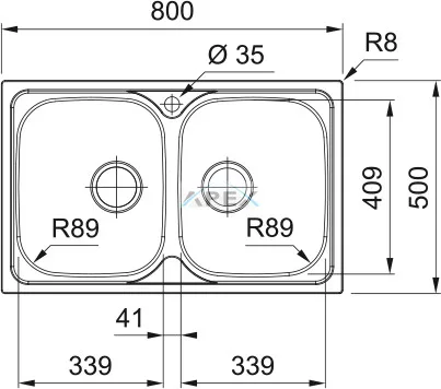 Külső méret: jobbról balra 800 mm