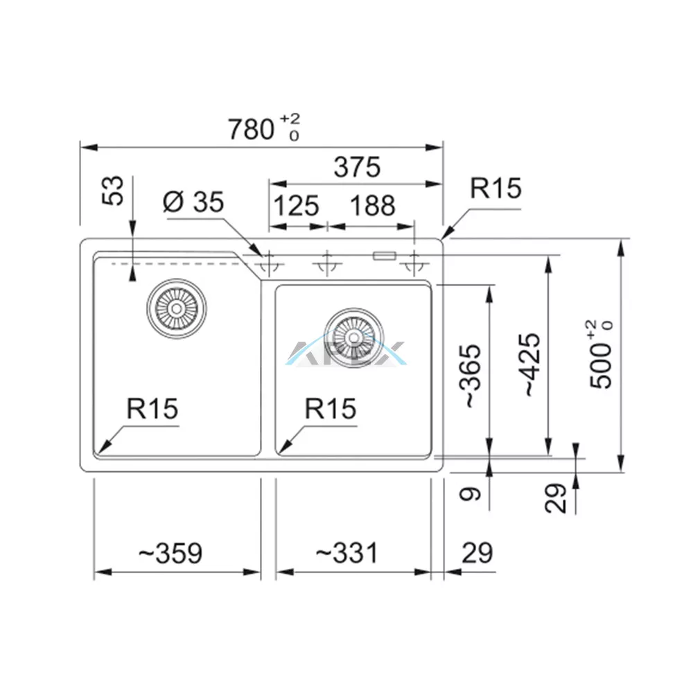 Külső méret: jobbról balra 780 mm