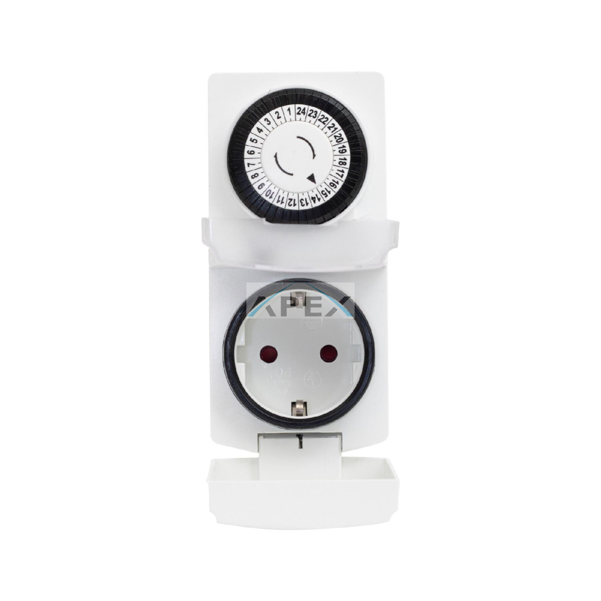 A 30 perces felbontású napi kapcsolóóra lehetővé teszi, hogy pontosan beállítsa az eszközök ki- és bekapcsolási idejét. A megbízható mechanikus kialakítás és a manuális bekapcsolás hiánya biztosítja, hogy az időzítő mindig a beállítások szerint működjön, így Önnek nem kell aggódnia az esetleges kézi beavatkozások miatt.