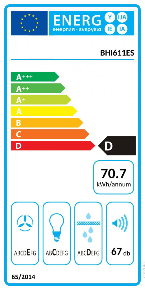 • Éves energiafogyasztás: 70,7 kWh