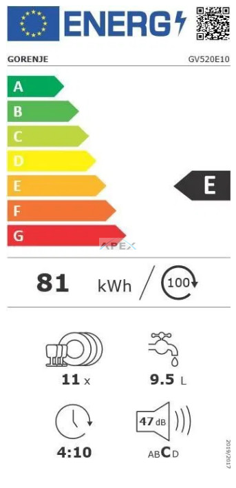 GORENJE GV520E10 Beépíthető keskeny mosogatógép