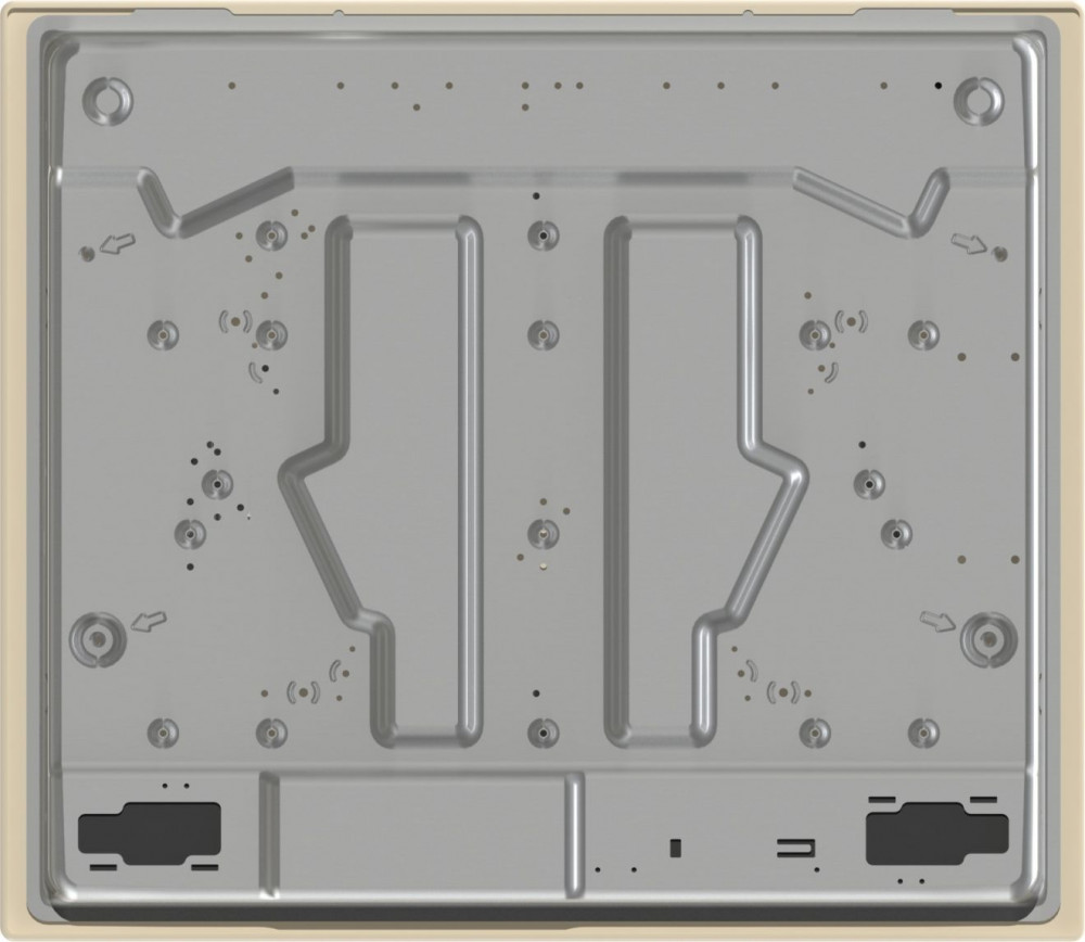Classico design, 4 gázégő, 1 wok, egykezes szikragyújtás, öntöttvas edénytartó rács és égőfejek, kezelőszervek elöl, elefántcsont szín, égésbiztosító