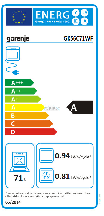 Energiaosztály A-tól (hatékony) G-ig (kevésbé hatékony) terjedő skálán