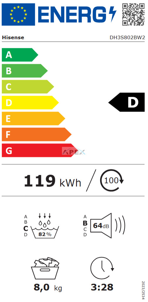 HISENSE DH3S802BW2 Hőszivattyús szárítógép 8kg