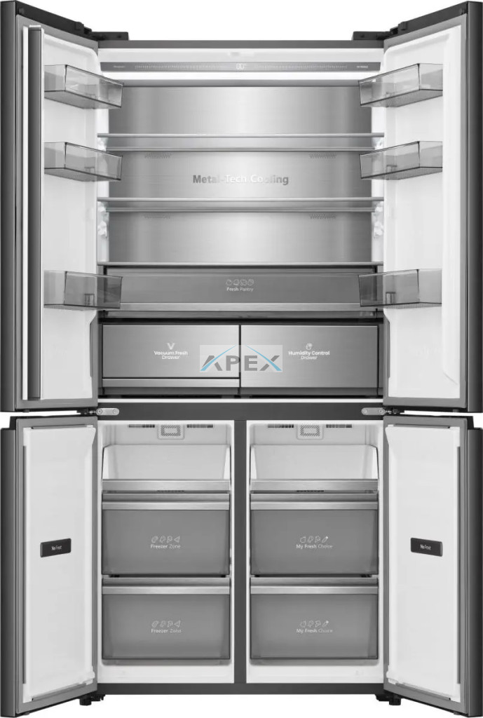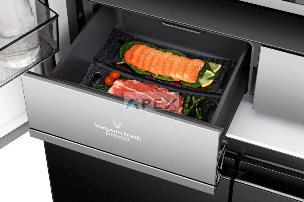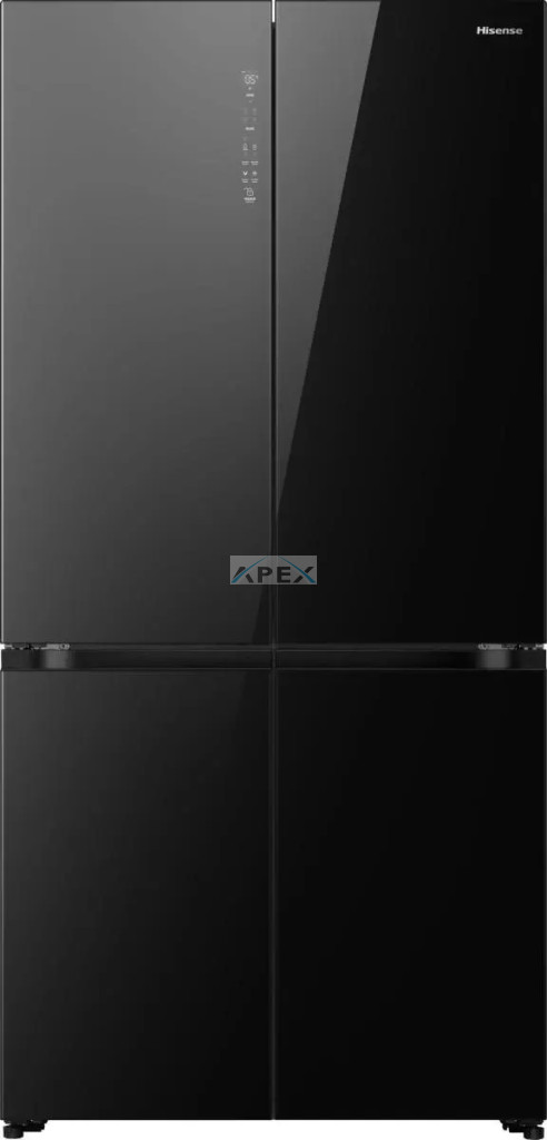 HISENSE RQ768N4GBE Négyajtós fekete üveg hűtőszekrény, NoFrost, 591 liter, vacuum frissentartó fiók