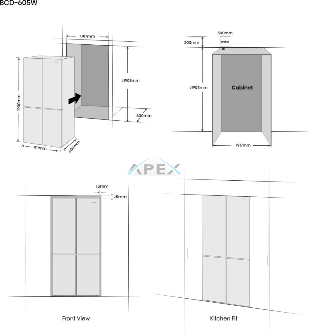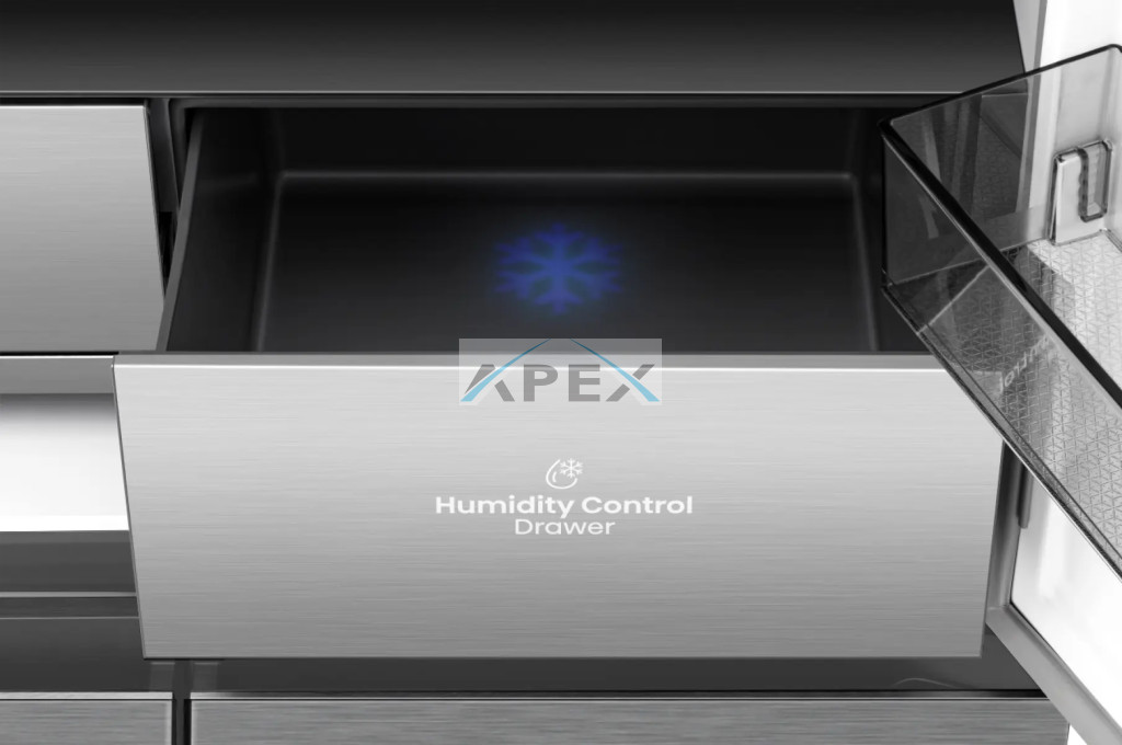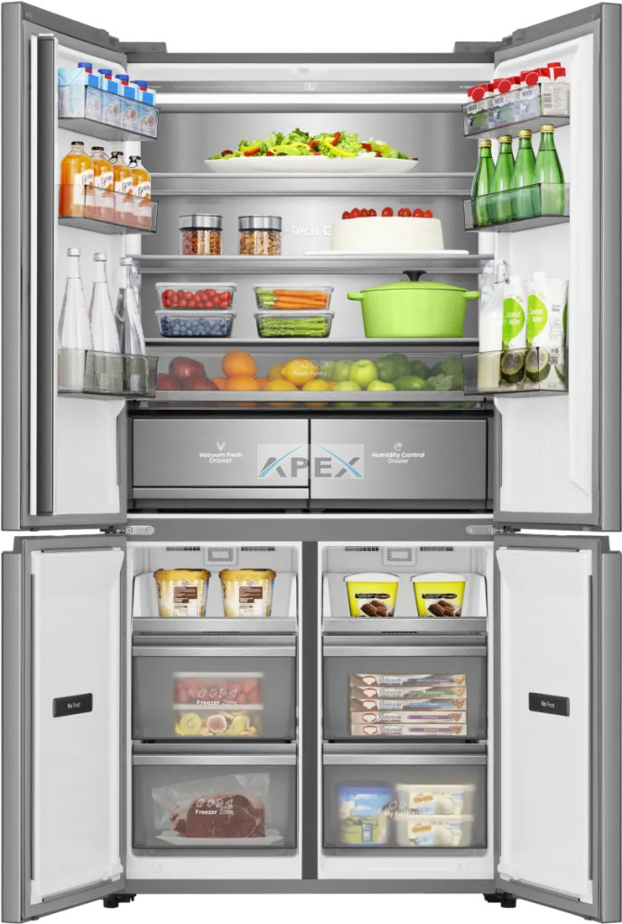 HISENSE RQ768N4GVE Négyajtós inox üveg hűtőszekrény, NoFrost, 591 liter, vacuum frissentartó fiók