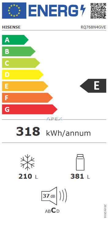 Energiaosztály A-tól (hatékony) G-ig (kevésbé hatékony) terjedő skálán: E