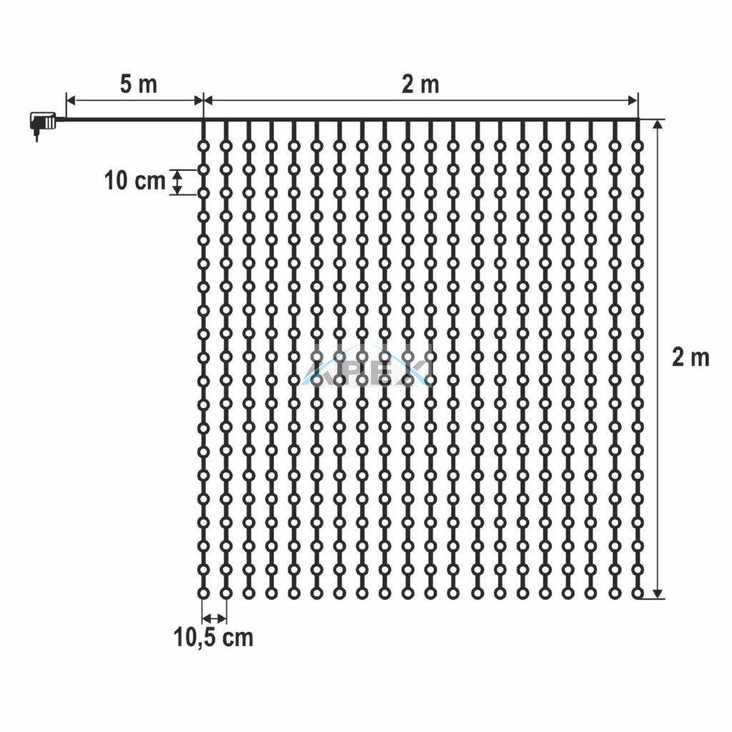 2m x 2 m befoglaló méret • füzértávolság 10,5 cm • 10 cm LED-távolság