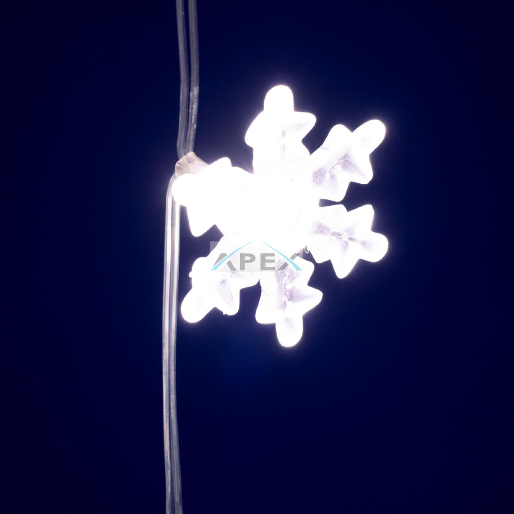 A fényfüggöny különlegessége a 50 darab 7 cm-es hópehely, amelyek mindegyike melegfehér LED-del világít. A fények tisztasága és a hópelyhek részletgazdag kialakítása igazán ünnepi díszítést biztosít, amely harmonikusan illik a karácsonyi dekoráció többi eleméhez.