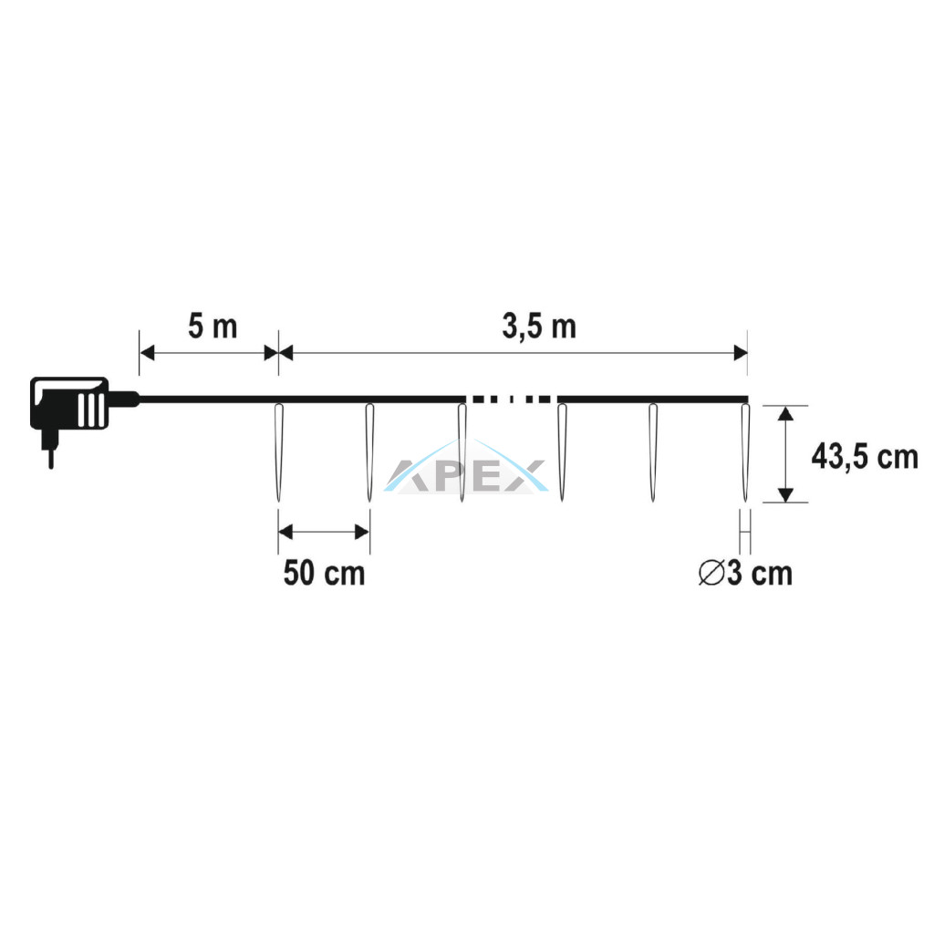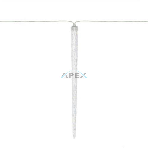 A fényfüzér 8 darab jégcsap formájú elemet tartalmaz, melyek mindegyikében 36 LED világít, így biztosítva a ragyogó, egyenletes fényt. A jégcsapok 43,5 cm hosszúak, egymástól 50 cm távolságra helyezkednek el, így a teljes fényfüzér különösen látványos és dekoratív. A hidegfehér fény elegáns, modern hatást kelt, amely tökéletesen illik a téli ünnepekhez, ugyanakkor egész évben használható stílusos kiegészítőként.
