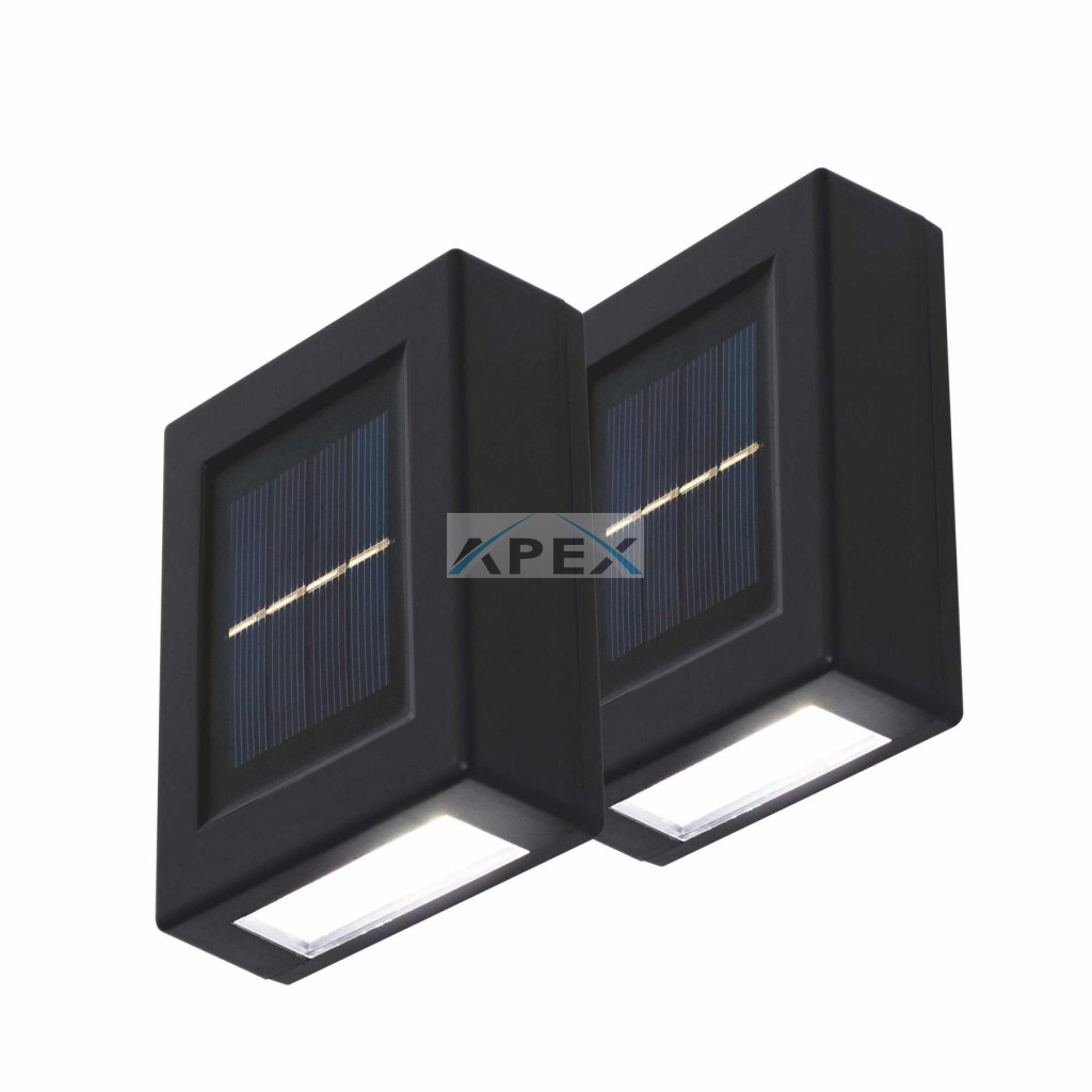 A lámpák kompakt mérete (7,4 x 3 x 10 cm) lehetővé teszi a diszkrét, mégis hatékony elhelyezést falakon, korlátokon vagy kerítésoszlopokon. A fekete színű műanyag burkolat pedig modern, időtálló megjelenést kölcsönöz minden felületnek.