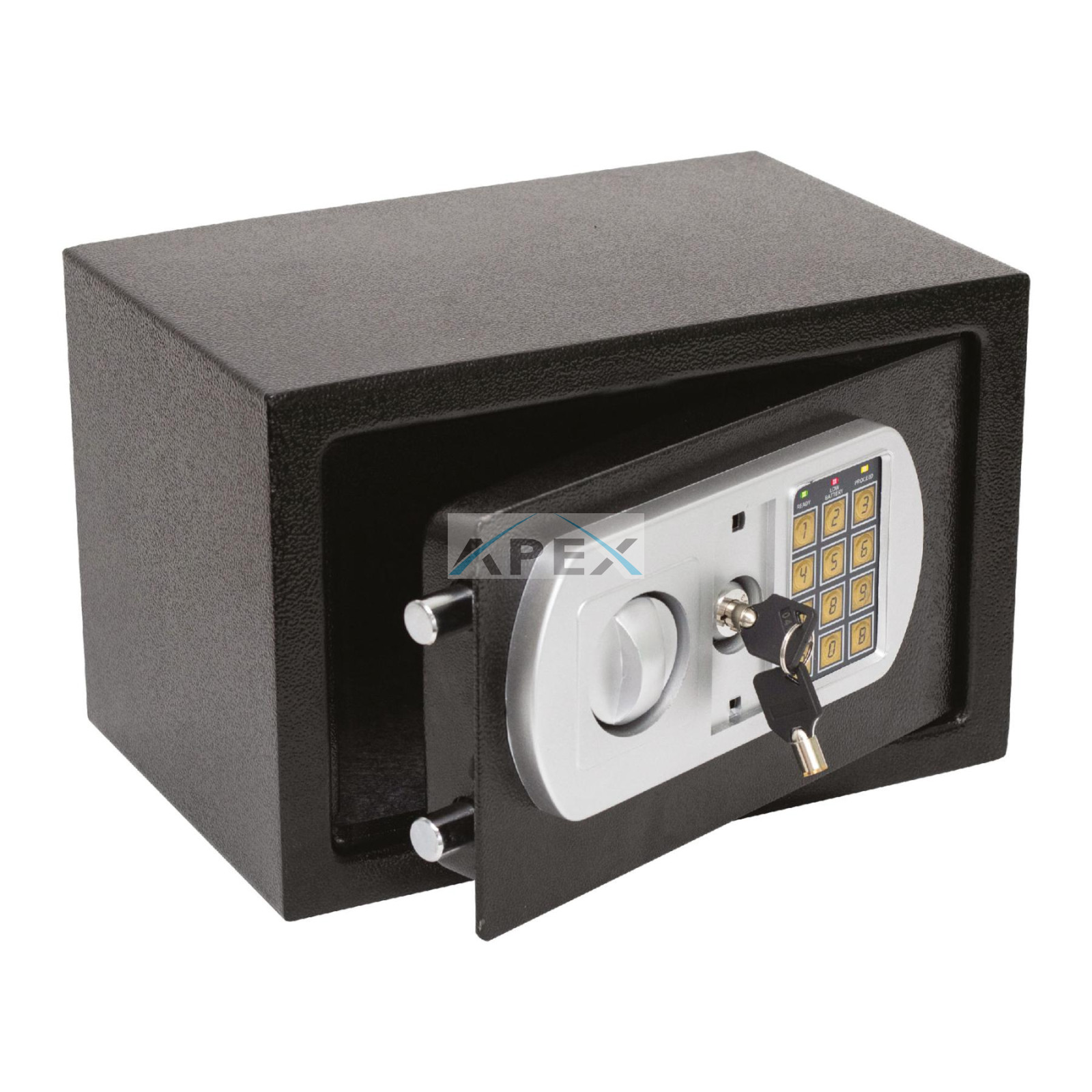 A széf erős acél konstrukcióval készült, amely megbízható védelmet nyújt a mechanikai behatásokkal szemben. A digitális, elektromos zárszerkezet lehetővé teszi, hogy 3–8 számjegyű tetszőleges kódot állítson be, melyet igény esetén gyorsan és egyszerűen megváltoztathat. A biztonság növelése érdekében illetéktelen nyitási próbálkozások után a készülék automatikus késleltetést aktivál, tovább fokozva az értékek védelmét.