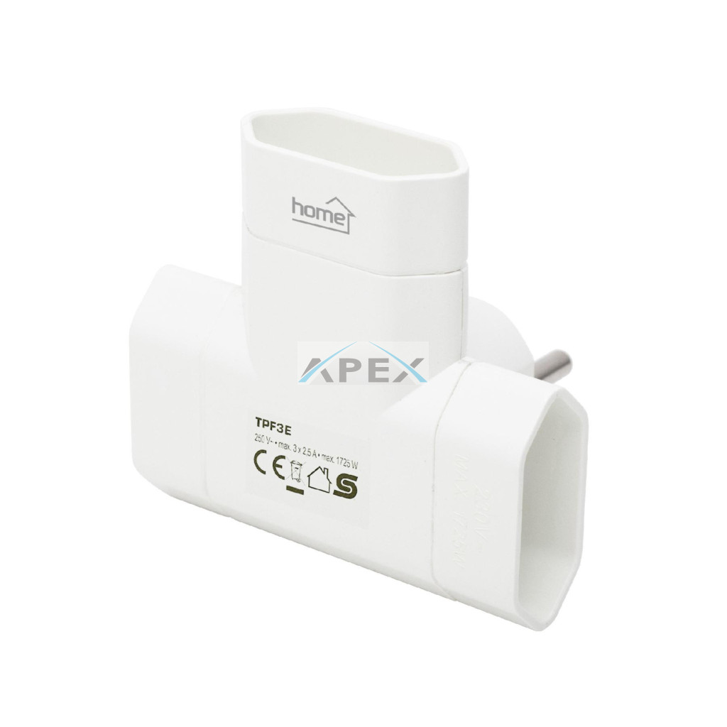 HOME TPF3E T elosztó, 3-as EURO aljzat, 250V~, max. 1850 W, 3x2,5A, fehér
