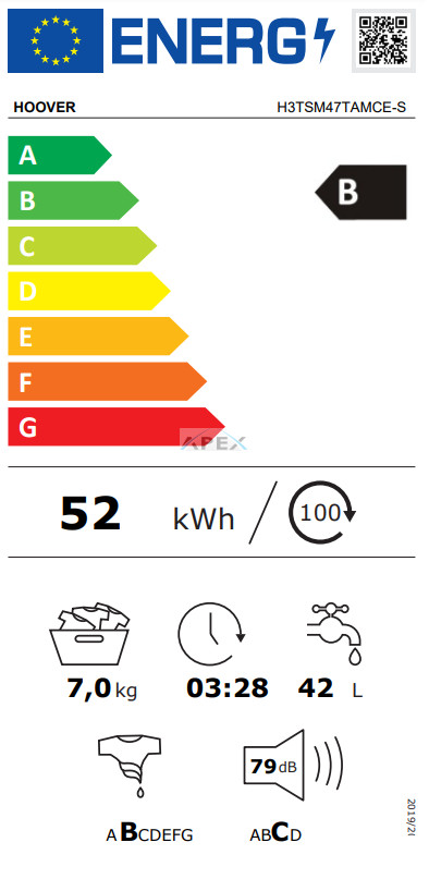 • Súlyzott energiafogyasztás [100 ciklus, Eco 40-60 program]: 52