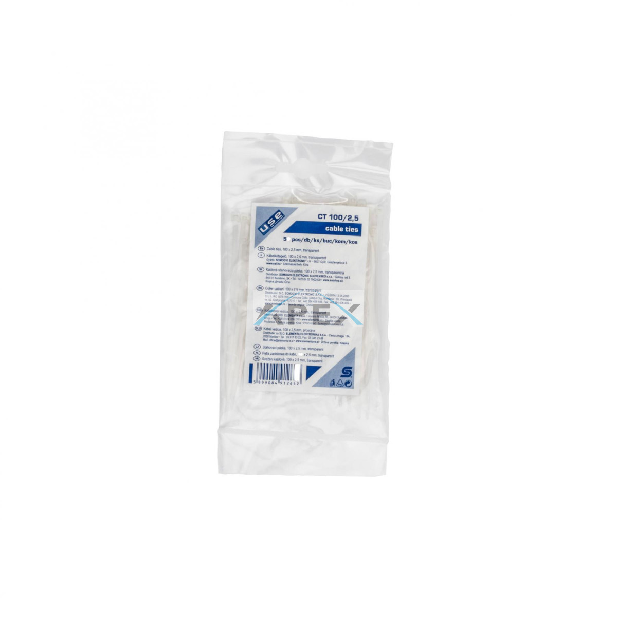 A CT 100/2,5 transzparent színű kábelkötegelő, 100 mm hosszúságban, 2,5 mm szélességben, valamint 50 db/csomagban kapható.