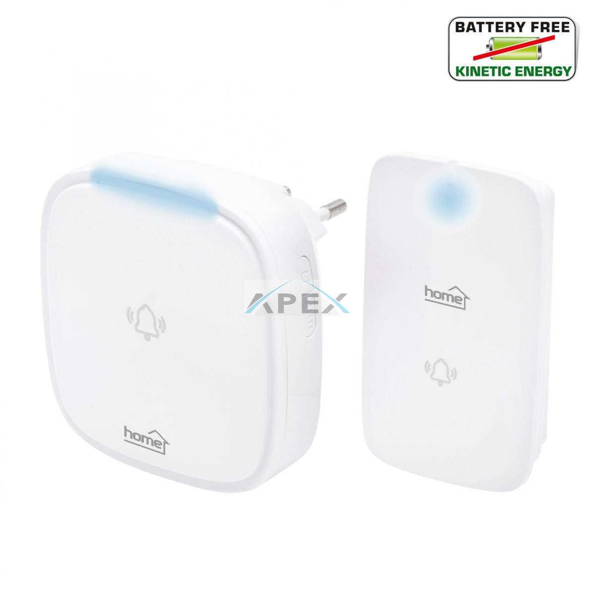 Home DBK 1500AC vezeték nélküli csengő, elem nélküli, 150m hatótáv, 36 dallam, 4 fokozatú hangerő, fényjelzés, kinetikus nyomógomb, 230V-os tápellátás