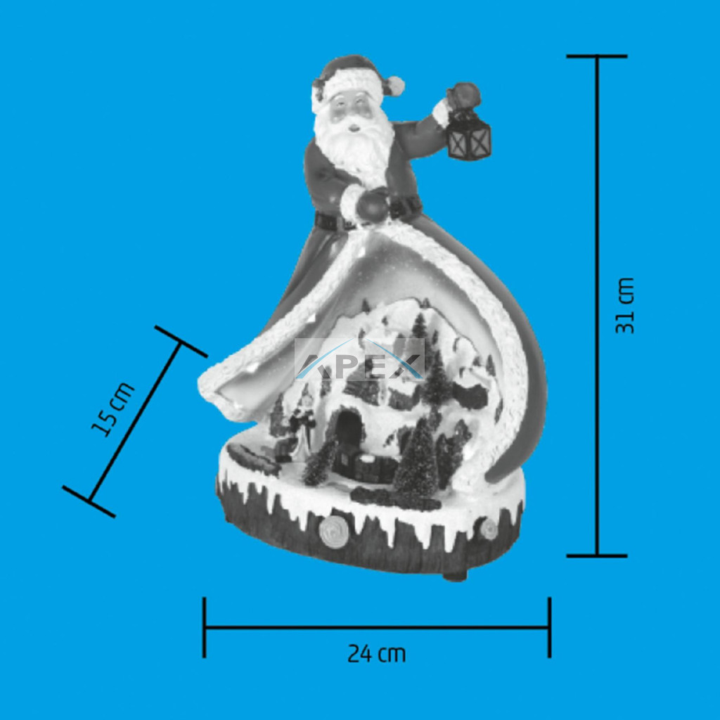 Ez a beltéri kivitelű, színes LED világítással ellátott dísz egy körbejáró kisvonattal kápráztatja el látogatóit, miközben a háttérből kellemes karácsonyi dallam szól. A termék választhatóan néma üzemmódban is képes működni. A tápellátást 3 x 1,5 V (AA) elem biztosítja, melyek nem tartozékok.