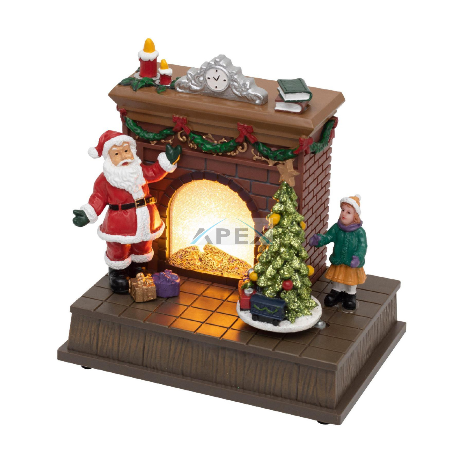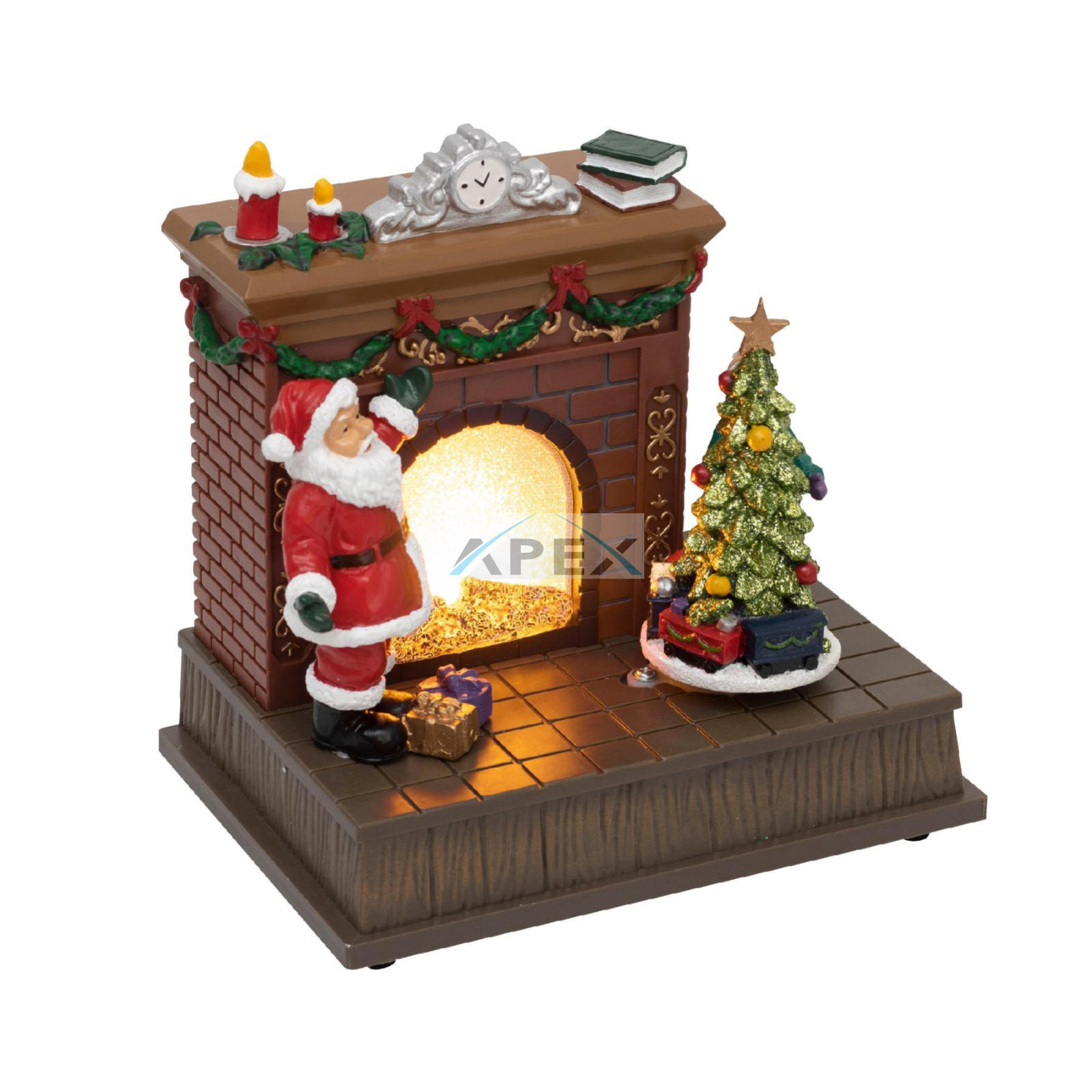 Önnek a meleg, otthonos atmoszférát. A kandalló mellett egy forgó karácsonyfa és a Mikulás teszi teljessé az ünnepi képet.