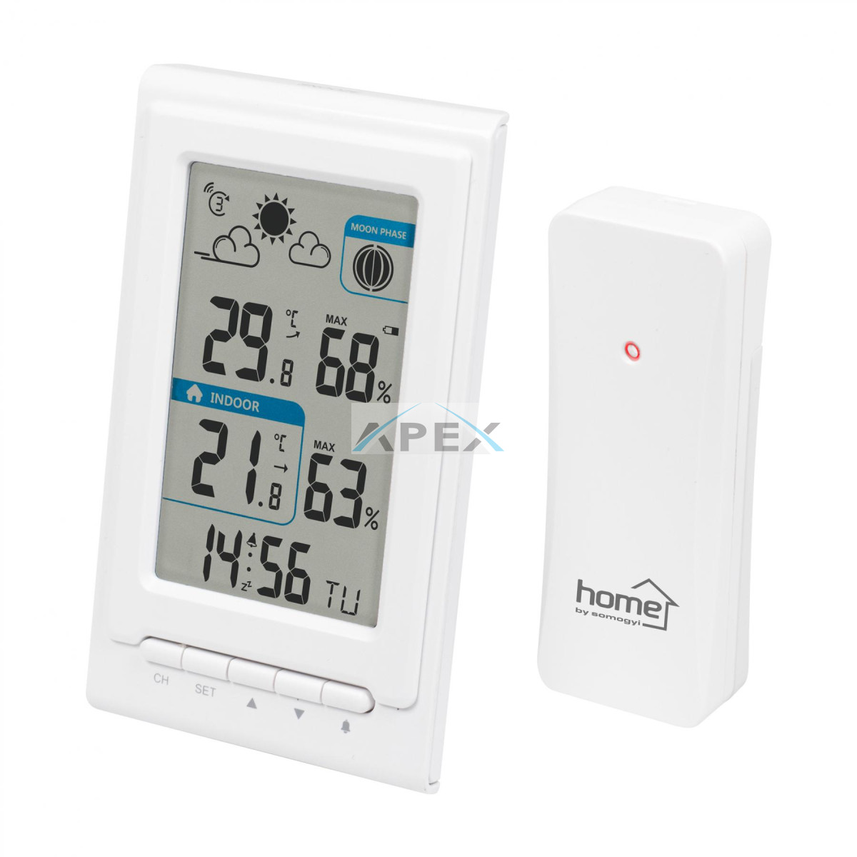 A Home HCW 01 időjárás-állomás külső jeladóval ideális választás azok számára, akik megbízható információkat szeretnének kapni a hőmérsékletről, páratartalomról és az időjárási viszonyokról. A készülék várható időjárás szimbólumokkal, Holdfázis kijelzéssel, valamint maximum és minimum értékek rögzítésével segít, hogy mindig naprakész legyen.
