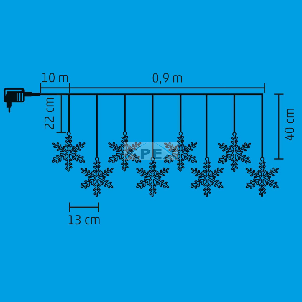 A 0,9 méter hosszú függöny ideális ablakok, ajtók vagy teraszok díszítésére, miközben a 10 méteres tápvezeték lehetővé teszi a könnyű és rugalmas elhelyezést. A mellékelt IP44-es védettségű kültéri hálózati adapter biztosítja a biztonságos használatot külső környezetben is. Továbbá, a csomag tartalmaz 8 tapadókorongot, amelyekkel könnyedén rögzítheti a hókristályokat üvegfelületekre.
