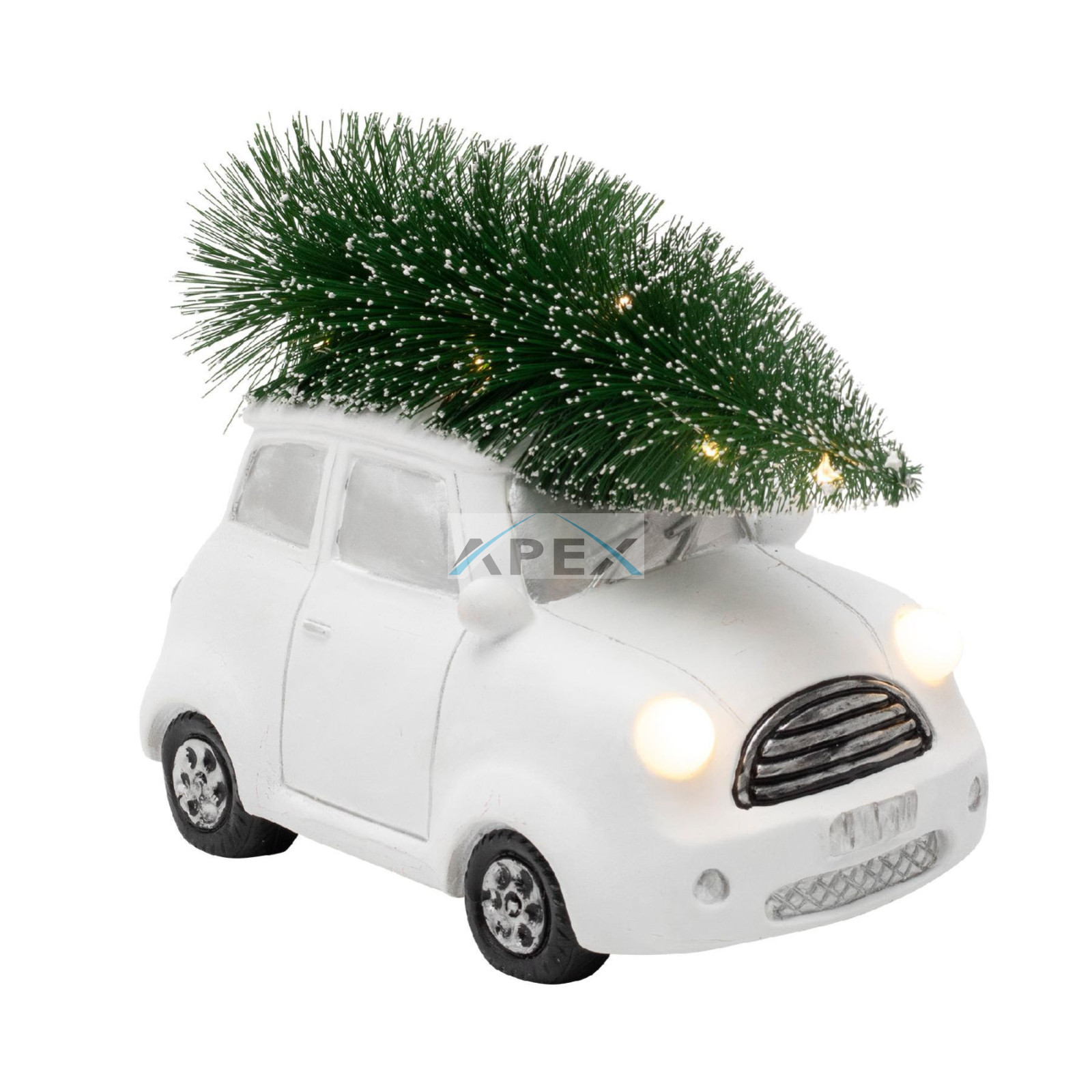 Home KDCA 15 LED-es kerámia fehér autó figura, beltéri kivitel, 11 db LED